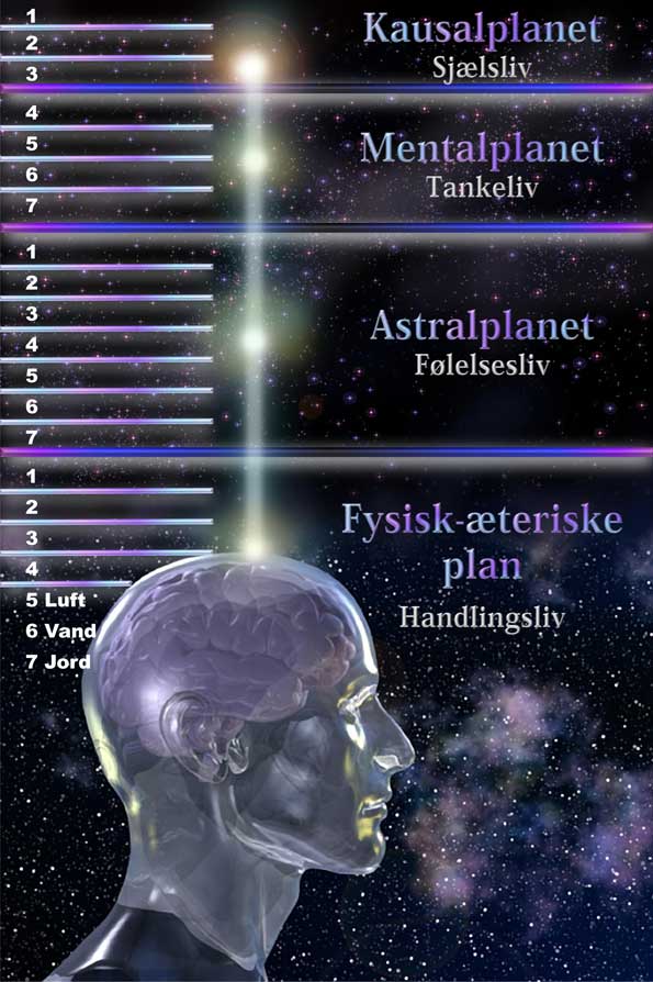 I fortsættelse af denne analogi kan man sige, at sjælens kausallegeme består af stof fra det syvdelte mentalplans tre øverste underplaner, men for langt hovedparten af menneskeheden er der endnu ingen aktivitet over det laveste af de tre underplaner. Og selv på det laveste kausalplan er aktiviteten sædvanligvis kun sporadisk. Derfor kan sjælen kun sende en lille del af dette stof ned på de lavere planer − og kun en lille del af denne del kan forbindes med mentalt og astralt stof på planerne under kausalplanet.