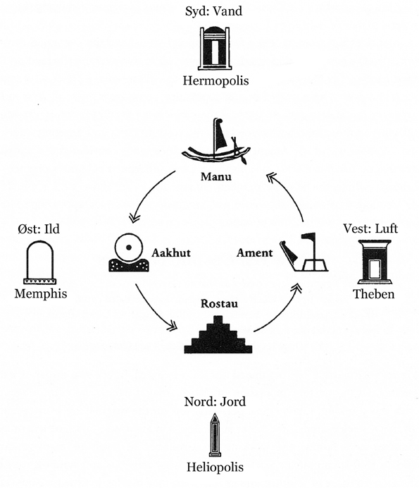 I det gamle Egypten refererer Ament til højre hånd og retningen vest (sådan som man ser verden, når man ser mod syd). I Egypten blev alle begravelser foretaget på Nilens vestbred, og Amenti er et af navnene på de guder, der repræsenterer de mennesker, der er "gået over". Amenti er desuden en betegnelse, der nogle gange gives til Osiris i hans aspekt som afdød gud. Amentiu er et navn, der ofte benyttes i begravelsesteksterne, og det henviser til de mennesker, der er gået ind i "Vestens land" (efterlivet), og Amentet henviser til Aments "skyggeverden".