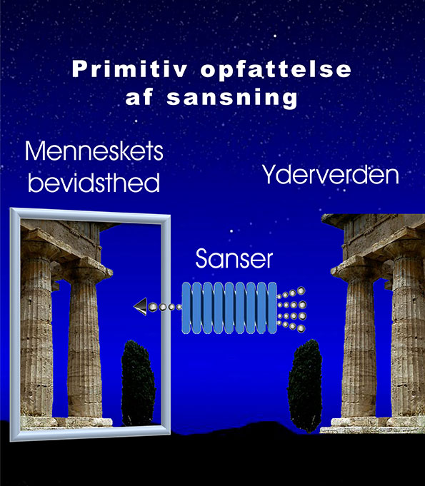 Den primitive og tankeløse forklaring på sanseopfattelser konkluderer, at ved hjælp af sanserne skabes der et billede af den omgivende verden i bevidstheden, og at billede og virkelighed er nøjagtig ens. (Se fig. 2).